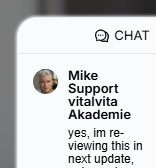 Sende dein Feedback jederzeit im Chat (unten rechts) an: Mike Support vitalvita Akademie